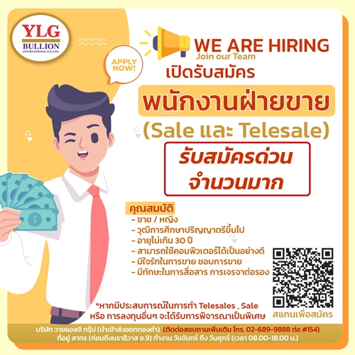 พนักงานฝ่ายขาย (Sale and Telesale) บริษัท วายแอลจี บูลเลี่ยน อินเตอร์เนชั่นเเนล จำกัด