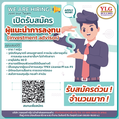 - มีใบอนุญาตผู้แนะนำการลงทุน TFEX License P1 และ P3