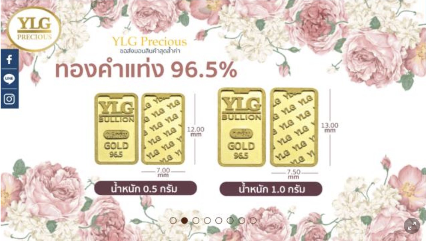 ทั้งนี้ วายแอลจี มีผลิตภัณฑ์ทอให้เลือกหลากหลาย ทั้งที่เป็นทองคำแท่ง 99.99% และ 96.5% ทุกขนาดน้ำหนัก ทองรูปพรรณ 99.99% และ 96.5% แผ่นทองคำ 99.99% และ จอวเวลลี่